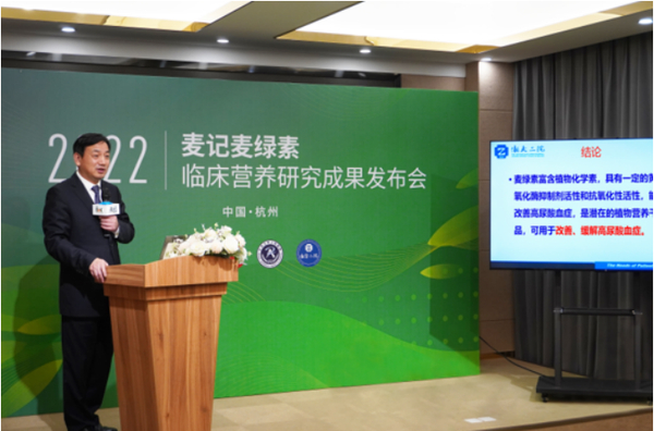 近日,浙江大学附属第二医院营养科张片红教授团队有关“麦记麦绿素临床营养研究成果”在杭州发布。团队最新研究成果显示:麦绿素可用于改善、缓解高尿酸血症。