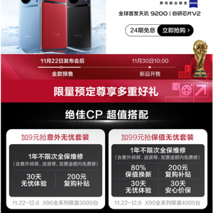 京东预定世界杯全球官方手机vivo X90系列 加9元解锁专属服务包