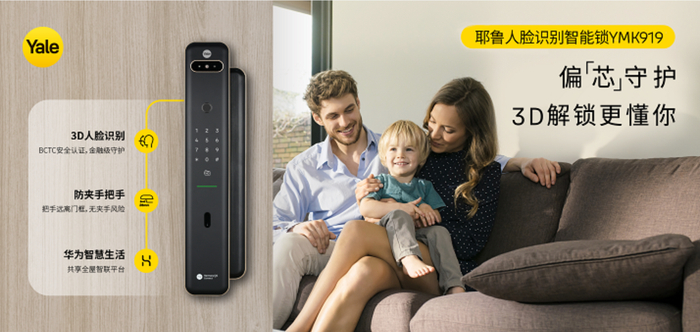 刷!秒开!耶鲁创新防夹手3D人脸智能锁YMK919重磅上市