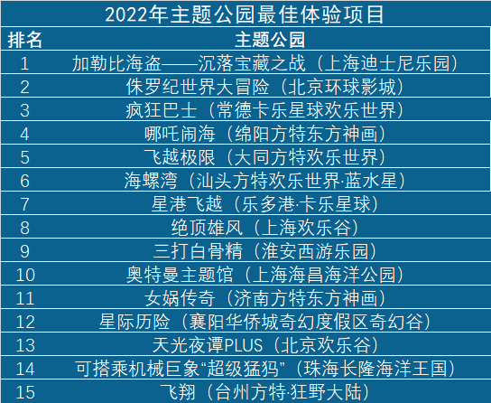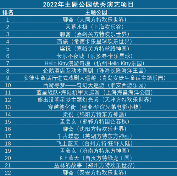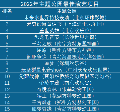 2022年主题公园最佳&优秀体验项目、演艺项目最终评选结果揭晓