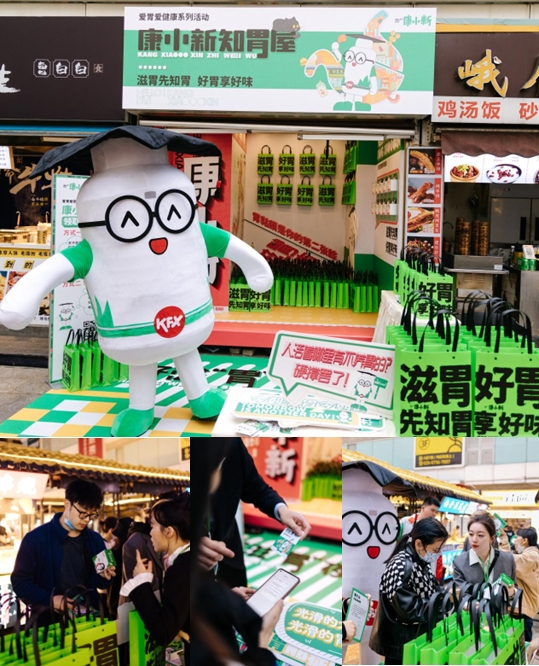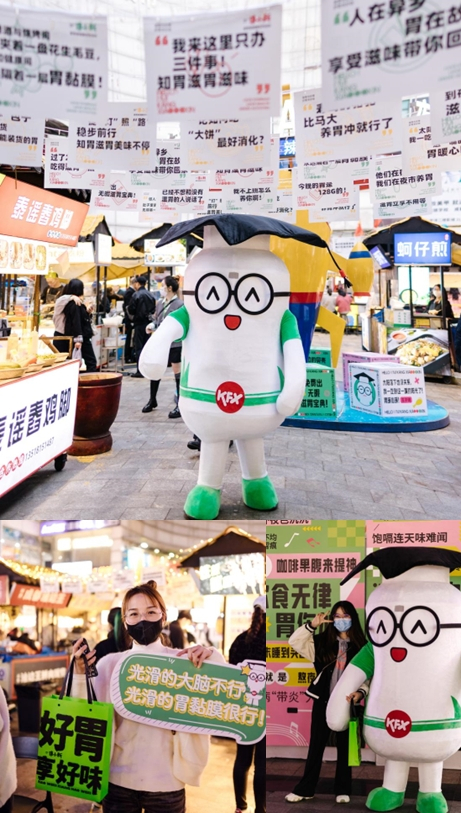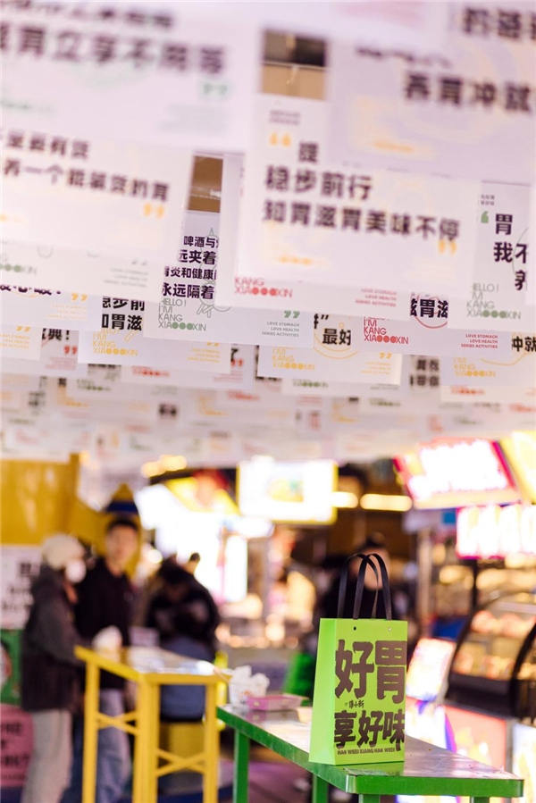 这次康小新联名夜猫子夜市打造的好滋味夜市,是在美食场景的基础上,特别提供了知识宵夜。“有营养的不止美食,还有知识。除了整个场景的氛围改造,我们还特别打造了这个‘康小新知胃屋‘快闪店,我们提供介绍了夜市特色美食指南,并附上如何吃得更有“滋胃”的指南长图,还有‘到底胃啥子‘的科普卡片、爱胃礼包,既吃得好,又能吃得健康。“”通过场景融合科普的形式,大家接受也更容易。”好医生集团品牌管理中心相关工作人员介绍到。