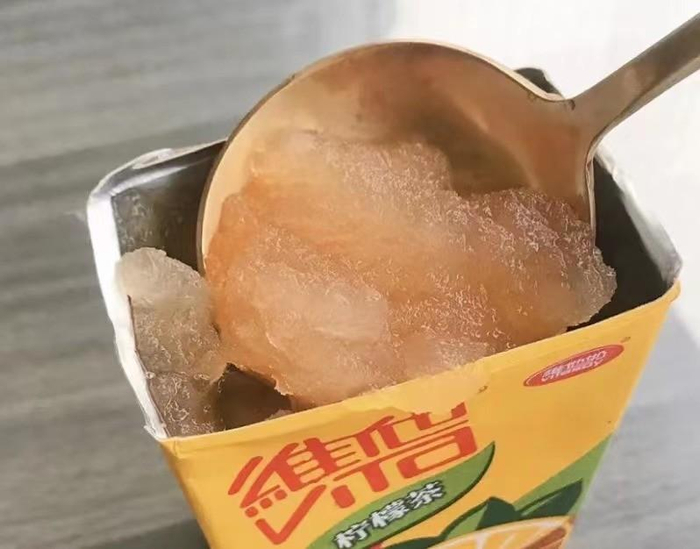 没错,维他柠檬茶的正确打开方式当然是冬季火锅夏季烧烤啦,相信我,喝过一口你就知道什么叫做“真茶真柠檬,够真才出涩”。不过,作为维他柠檬茶的小迷妹,单纯喝维他柠檬茶已经满足不了我啦!尤其是北方的家里,冬季有地暖温度直升二十几度,所以家里常年备雪糕。奈何现在雪糕刺客越来越多,既然家里这么多维他柠檬茶,我也跟着网上的小伙伴学了一波。昨天自制了一个维他柠檬茶冰沙,只需把维他柠檬茶放在冰箱速冻里5到6个小时,撕开包装用勺子挖着吃,真的要比雪糕解腻多了,吃起来和沙冰一个口感。