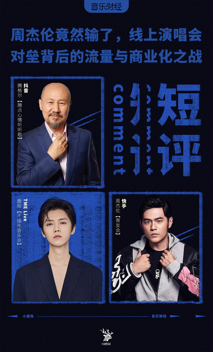 首先,平台之间的流量争夺更加激烈。鹿晗线上音乐会和腾格尔在线演唱会“突袭”,都起到了不错的预热破圈效果,可以说,两家起码分走了当晚原属于周杰伦一半的流量。