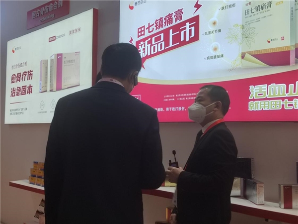 据悉,本届展会,赛灵药业携旗下产品恒古骨伤愈合剂、蓝芩颗粒、田七镇痛膏共同参展。赛灵药业董事长曹智刚在现场为到访宾客介绍产品,吸引了众多宾客前来参观并收获好评。