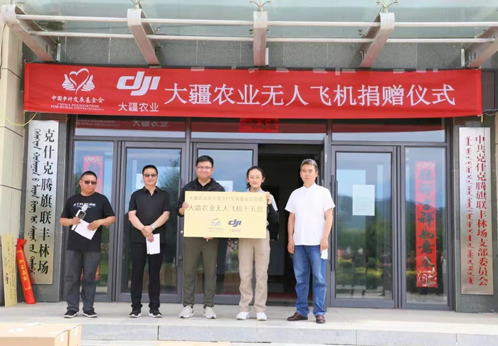 今年 7 月 20 日,大疆农业向中国乡村发展基金会捐赠 15 台农业无人机。这批无人机将用于甘肃省漳县、金塔县、内蒙古自治区克什克腾旗范围内,包括蚂蚁森林捐资种植地块在内的所有林草资源,助力病虫害防治,推动林草业的绿色可持续发展。