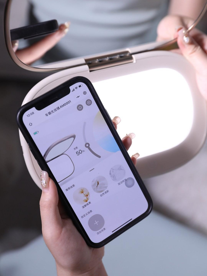 Uait小柚爱途智能车载化妆镜由顶级化妆师和光学专家联合研发最优补光解决方案,具有三种灯光模式,智能无极调光,冷、暖、自然3种色温,9档亮度调节可选,模拟了27种光线。让更多女性可根据出席场合,调整光效,打造最适合的妆容。