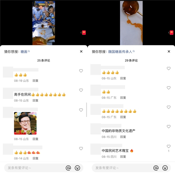 “好厉害”“这才是高手”“给手艺人点赞”......面对评论区一排排的点赞大拇指,魏生国感到受宠若惊,“大家都鼓励我将糖画传承下去,还有好多人想要拜师学艺”。