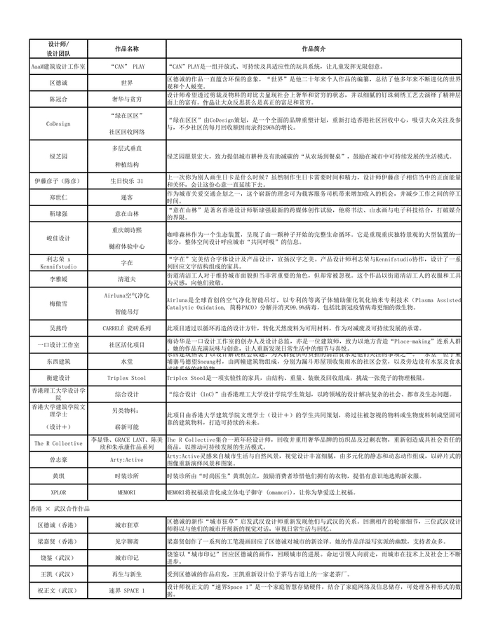 设计展集合了23组设计师,参与者包括香港资深设计师、新晋设计师、团体及设计院校毕业生等,以作品进行设计语言的对话,突出了设计和可持续发展的重要性,增加自然环境和社区的联系,共同为后疫情生活提供社区所需的想法、服务和设施。展览的作品则涵盖众多设计领域,更有来自香港及武汉合共五名不同领域的设计师协作完成的作品,以庆祝香港特别行政区成立25周年。