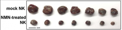 在皮肤癌小鼠模型中,经 NMN 处理的 NK 细胞也可减少肿瘤生长。