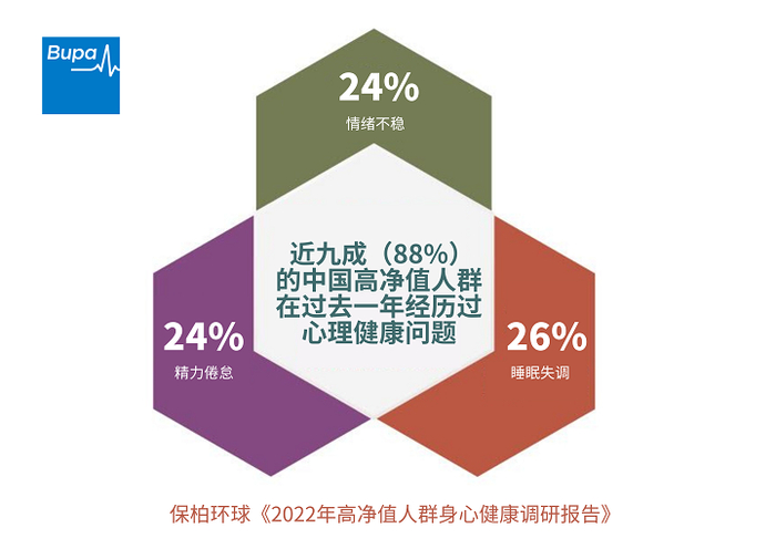 全球领先的国际医疗保险提供商保柏环球(Bupa Global)发布了《2022年高净值人群身心健康调研报告》,旨在对高净值人群的身心健康状态进行深入探究,洞察当前高净值人群的健康管理趋势及其对私人医疗保险的需求和期望。