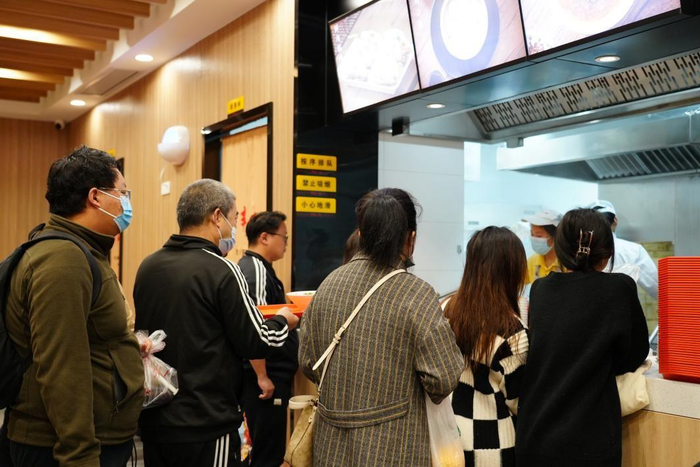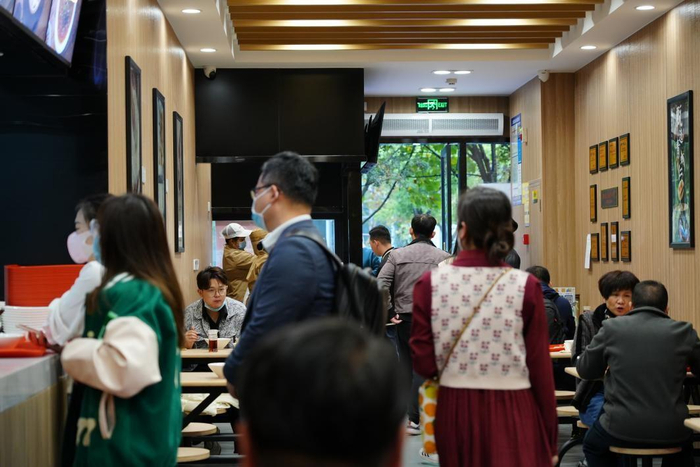 陆女士在门店附近的西子国际大厦工作,开业当天就来新丰小吃点了一份虾肉小笼和牛肉粉丝,“还是熟悉的味道,小笼里有一整颗虾仁。天气冷起来了,来一碗热乎乎的粉丝很落胃,这家店离公司很近,以后工作日的三餐就更有着落啦。”