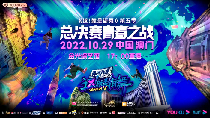 《街舞5》作为青年群体中具有代表性的icon,是潮流态度的风向标,定位为国际新秀交流赛,总决赛以青春之战为主题,将中外青年实力舞者共聚竞技舞台,一起为希望而战;而澳门具有多元化色彩的共融文化,其自然景观与人文气息是其一张独特的名片。近年来,澳门一直拓展更有趣、更亲近的方式和当代年轻人沟通,通过街舞这一介质,更能在青年热爱表达之中促进文化的交融与交流,最大程度上拉拢年轻人群。