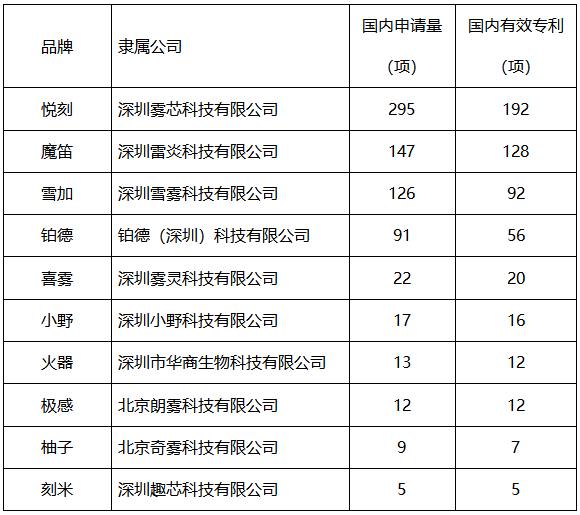 2022年电子烟品牌国内专利技术排行榜出炉: