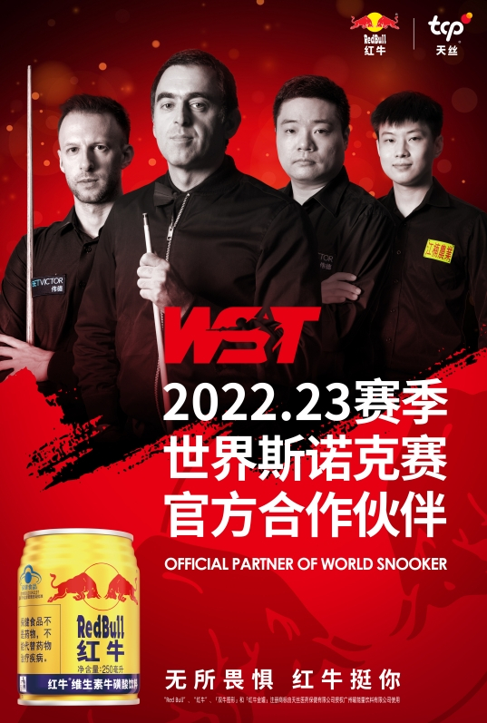 从2022年11月开始,红牛®维生素牛磺酸饮料成为2022/23赛季世界斯诺克赛官方合作伙伴。红牛@维生素牛磺酸饮料作为世界斯诺克巡回赛四站赛事官方能量补给饮料,这款具备保健食品认证的产品富含牛磺酸,富含维生素B族,能迅速缓解疲劳,为顶级运动员提供能量保证。
