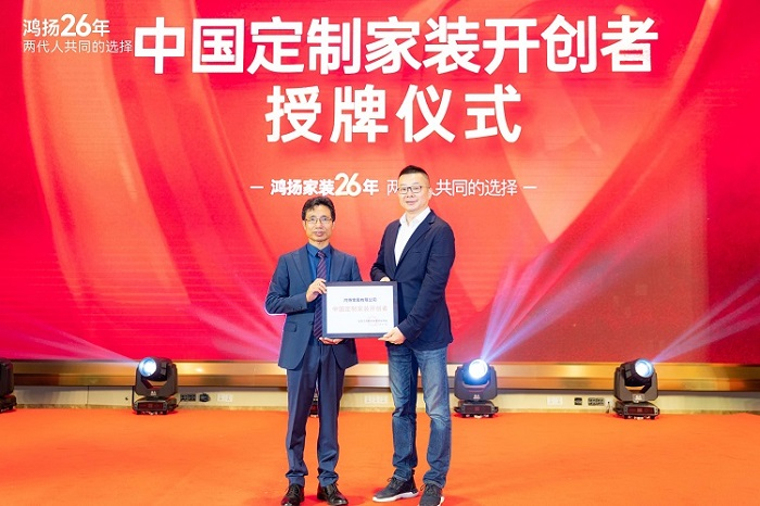 “鸿扬家装自创立以来,坚持政治引领,践行国家政策,创新企业发展,用高品质领跑新时代中国家装,堪称行业楷模。作为国内最早开始研发定制家装的优秀品牌装企,鸿扬家装26年坚持深耕高品质之路,以高标准为基本要求,更高标准为前进目标,持续领跑行业。”全国工商联家具装饰业商会副秘书长谢鑫郑重宣布,“经过全面调研和审核,全国工商联家具装饰业商会正式授予鸿扬家装‘中国定制家装开创者’的名号。”