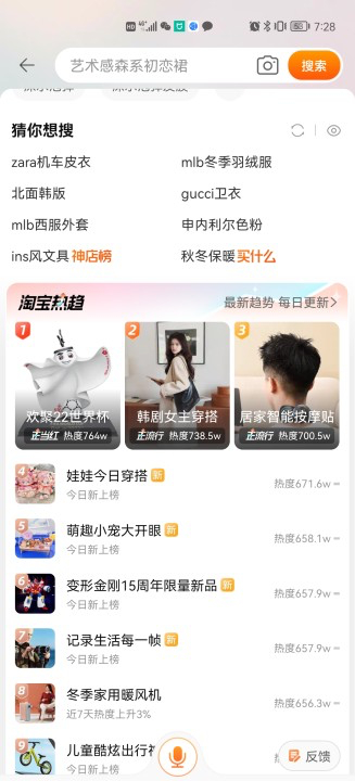 打开淘宝搜索,你或许会发现搜索框下会出现一个“淘宝热趋”排名。以最近某一天淘宝热趋举例,前三名分别是“22世界杯吉祥物”“时髦灯芯绒外套”“高颜值野餐车”。再回顾今年双11,则涌现了“巴黎世家联名款”、“截断式妆容”、“黑化露营风”等让人眼前一亮的消费热点。