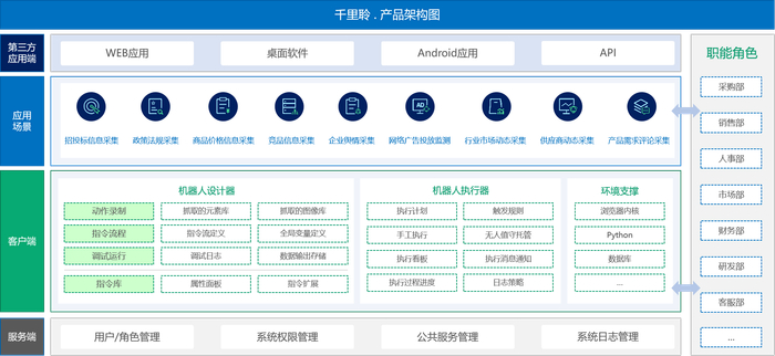 所以,无论你处于何种规模和类型的组织,都能通过千里聆快速配置符合信息采集需求的机器人,拥有获取价值数据的能力;无论你处于组织中的哪个部门,也都可根据需求灵活配置部门级的解决方案。