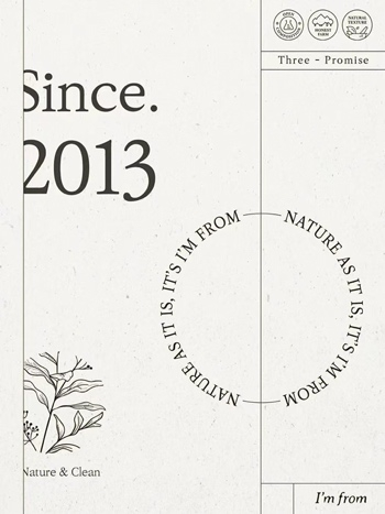 I’m from爱肤兰于2013年在韩国首尔创立。经过深度的市场调查和消费者洞察,品牌决定以肌肤易敏感群体的用户需求为切入点,解决市场现阶段护肤产品在成分和功效之间的平衡,打造真正安心、见效,且能突出“关注自身”这一生活态度的产品,塑造消费者对“纯净系护肤”这一概念的理解。