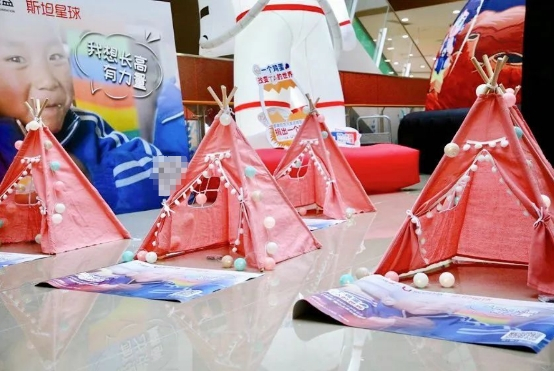 小小的粉色帐篷布满现场,像一颗颗粉色的爱心。它们将作为本次公益活动的摊位。不一会儿,小朋友们到达现场,选择好属于自己的摊位,拿出作为爱心义卖的小物件,将它们整整齐齐摆放在摊前,开始售卖并进行巡游。