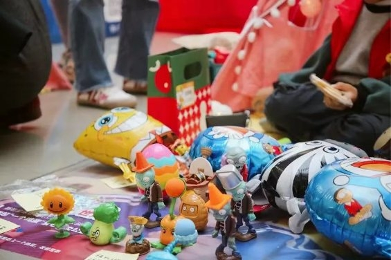 放眼望去,摊位上的义卖小商品琳琅满目:有小玩偶、手办、和各式各样的字帖与书。每个小物件都浸满孩子们对世界与对贫困地区儿童的满满的爱意、善良与童真。