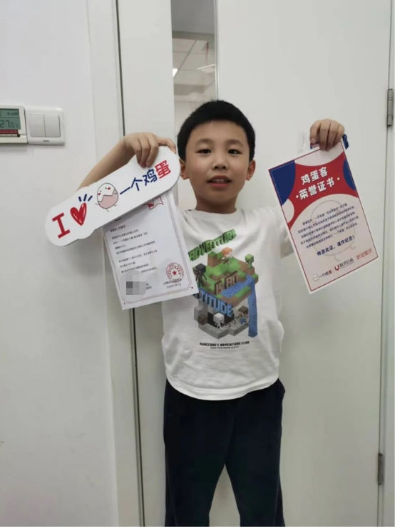 上海浦东金桥校区发起的公益活动主题是集章捐款活动。短短几天时间,金桥校区有60多位学员及家长参与捐款,组织小学员利用抵扣积章的形式献出爱心——每10枚小白章兑换3枚鸡蛋,每100枚小白章兑换30枚鸡蛋,以此类推。兑换的鸡蛋将捐献给欠发达地区的儿童们。