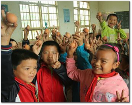 如果每天给贫困地区孩子一个鸡蛋,就可能改善他们的身体和智力发育状况,改变他们膳食结构不合理,以及营养摄入量低下的状况,保证他们的身体和智力均衡发展。