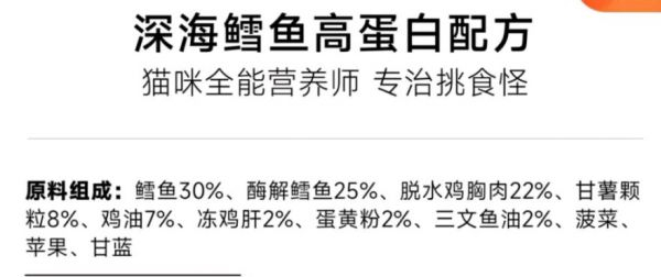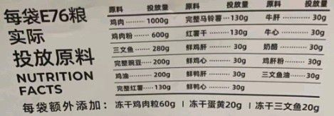 我们选取了一部分猫粮品牌的配料表,从图中可以看到,绝大部分品牌都会标注成“脱水肉”“冰鲜肉”“鸡肉”等,包括欧美的猫粮品牌也是如此。