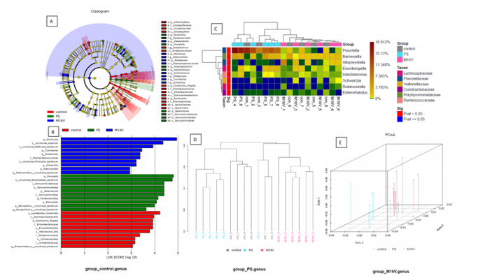 综上结果所述,基于表型和组学的分析,本研究建立一个实用的评估框架,可以对PS暴露的不良后果及其作用机制有了更深入的了解,该方法还可用于评价其他环境微塑料污染物的毒性。本研究充分证实了短双歧杆菌M-16V可通过调控宿主-微生物的相互作用,发挥抗炎和免疫调节功能。