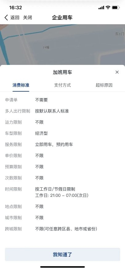 员工加班打车时,通过合思商城内「用车服务」叫车,系统自动校验打车时间和地点,满足差标的前提下由企业支付。不再需要贴票,不再需要报销,直达目的地,幸福感满满。
