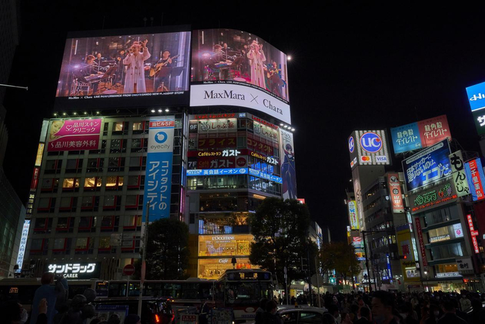 为庆祝新店启幕, Max Mara 于 2022 年 11 月 17 日隆重举办独家开幕盛典。在开幕盛典当天,日本歌手兼艺术家佐藤美和(Chara)倾情献声,演唱了包括新曲《A.O.U.》在内的数首代表作品。这场精彩的现场演唱会已在 Max Mara 官方网站上同步直播。同时,远近闻名的涩谷十字路口数块户外大屏幕亦滚动插播精选片段。