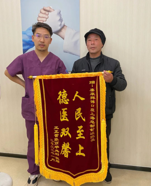 “后来林先生特意给送来一面锦旗给我们,喜悦之情溢于言表,病牙、旧牙换新牙,人生仿佛重新启动了。”舒凌院长表示,临床工作中的成就感,更多的是切实帮到患者。