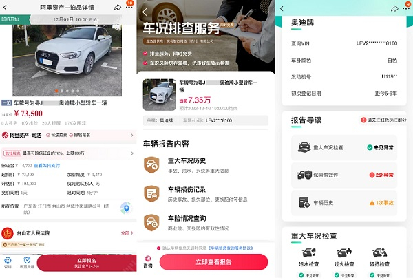 据了解,该法拍车车辆历史情况报告查询服务产品,今年6月在杭州市拱墅区人民法院先行试点向意向竞买人开放。当前法拍车历史车况查询支持服务范围进一步扩展至广东省、江苏省(南京、徐州、连云港、镇江)、四川省。数据显示,相比其他车辆,开放了车况免费查询服务的法拍标的平均浏览量、报名参拍用户量高出约20%,通过数字化产品的帮助,切实地提升法拍车处置效率。