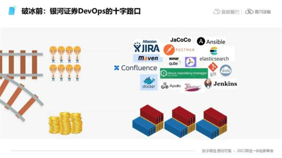 中国银河证券从2013年起就开始了建设DevOps,当时首先引进了项目管理工具JIRA和Confluence。