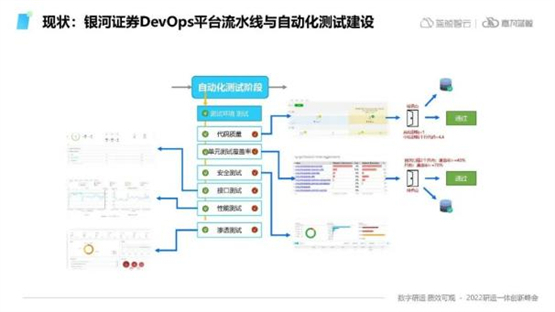 以下是自动化测试工具接入平台的示意图。目前,中国银河证券已陆续建设了接口测试、单元测试和UI自动化测试,后面还计划建设性能测试和安全测试。