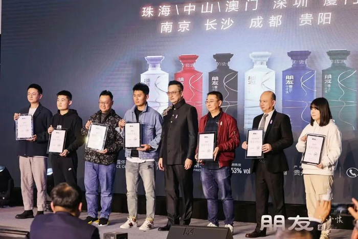 现场还播放了中国酿酒大师吕云怀、任义平等人对于朋友酒的品评视频,并对朋友酒的酒体给予了非常高的评价,鉴评意见中写到:微黄透明、酱香突出、香气舒适优雅、空杯留香持久。