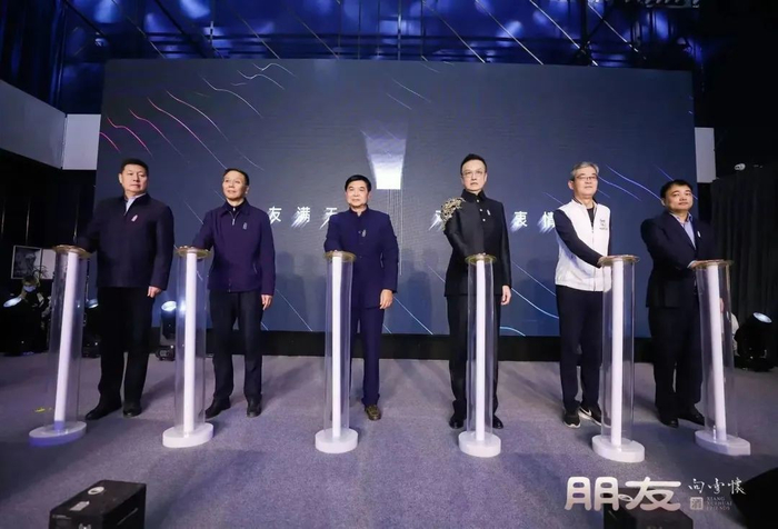 最后,班程农先生、李保芳先生、赵书跃先生、丁德杭先生、向雪怀先生,金小星先生等人上台按下启动键,共同宣布朋友酒正式面世。