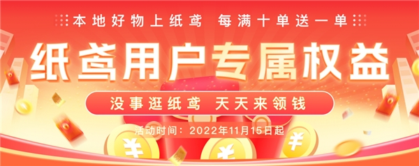 不必等待“双十二”,纸鸢好物年终大促提前开启,多重好礼等你来拿!即日起,用户下载并登录纸鸢APP,就可领取现金红包,每日登录均可领取。同时,所有用户还可享受“每满十单送一单”的会员权益,叠加大促期间各类优惠,优惠力度空前!