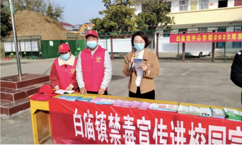 为加强临泉县白庙镇中小学生的禁毒及拒毒意识,白庙镇联合多部门到中心校开展禁毒宣传工作。