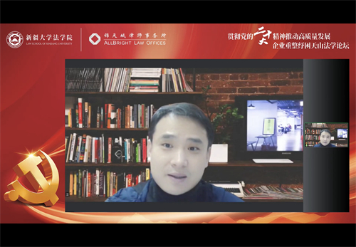 11月26日,由新疆大学法学院、上海市锦天城律师事务所主办,上海市锦天城(乌鲁木齐)律师事务所、新疆党内法规研究中心、新疆人权保障与发展进步研究中心、新时代依法治疆研究基地承办的贯彻党的精神推动高质量发展——企业重整纾困天山法学论坛通过“线上+线下”方式召开,论坛特邀了国内18位法学专家、重整投资人,破产管理人、金融债权人围绕“重整制度与预重整制度”和“困境企业重整机会的发现与把握”“破产领域金融机构债权的合理主张与维护”相关主题开展研讨。