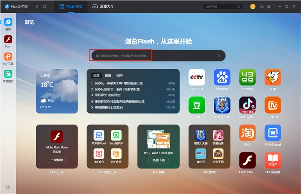 Flash中心浏览器功能,完美兼容各类网页游戏