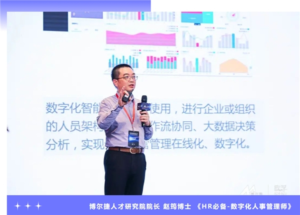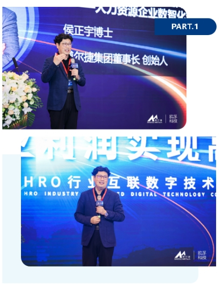 作为本次HRO大会的东道主,博尔捷数字科技集团创始人、董事长侯正宇博士率先登台,对现场的各位嘉宾、以及参会代表们表达感谢,并开展主题为“点、线、面、体”走向数智化,人力资源企业数智化变革”的精彩演讲。