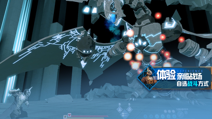 在与BOSS的对战过程中,玩家还需通过灵活的走位来躲避守护者的攻击。得益于PICO 4 亚毫米级的6DoF空间定位和毫秒级响应追踪,玩家不仅可以轻松完成攻击躲避,且在反击时,还能实现“指哪打哪”的畅爽操作。值得一提的是,在玩家使用手柄蓄力技能或用盾牌阻挡攻击时,PICO 4的HyperSense振感手柄所搭载的宽频马达也会随之振动,给游戏带来更为沉浸的体验感,最大程度地还原战斗真实性。