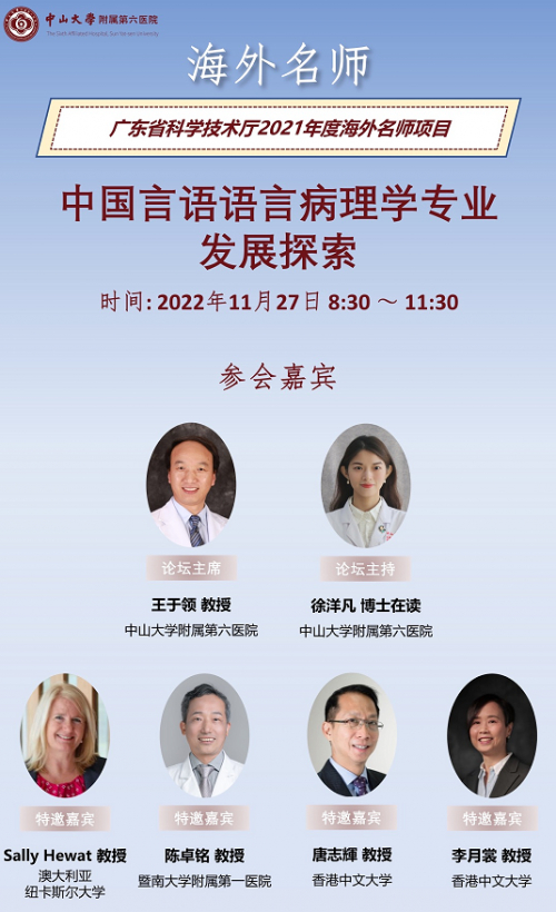 为共同推进国内言语治疗发展,广东省科学技术厅2021年度海外名师项目——“中国言语语言病理学专业发展探索”主题论坛将于11月27日召开。海内外言语领域多名知名专家学者将出席此次论坛项目,共享言语语言发展前沿科技创新成果,共议未来言语发展趋势。