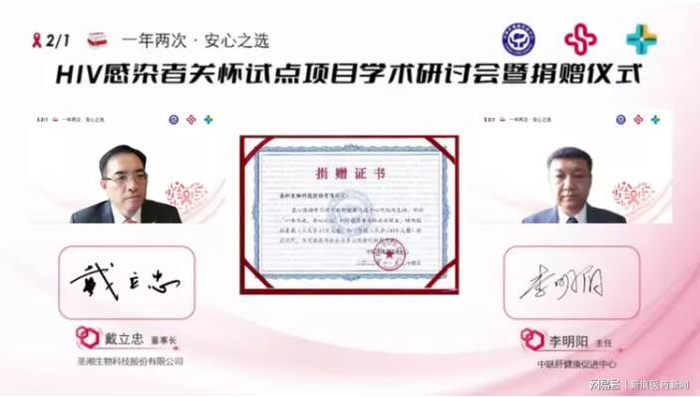 线上捐赠仪式由中联肝健康促进中心李明阳主任与圣湘生物科技股份有限公司戴立忠董事长共同启动,并和与会专家合影留念,见证了这一重要的时刻。在《抗HIV的承诺与愿景》演讲中,戴立忠博士指出,作为健康中国的一份子,我们一直致力于提高艾滋病检测的精确性和可及性,希望通过普惠、精准、高效、可及的高灵敏度核酸检测,为艾滋病感染者提供全病程科学监测,获得高质量诊疗服务。