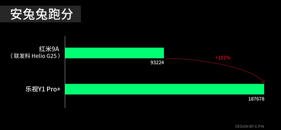 但,这台499元的大内存、大电池、大屏幕乐视手机Y1Pro+,可是在安兔兔上跑分跑赢了某米的同价位手机,分数超越了101%。所以,一台定价499元起的智能手机,为什么这么抗打?