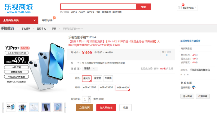 499元入手6+64GB大屏智能手机 乐视Y1Pro+买到就是赚到