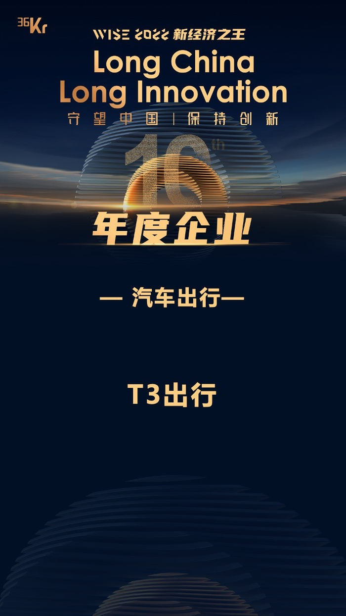 36氪WISE 2022新经济之王榜单揭晓 T3出行获评“年度企业”称号