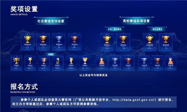 为鼓励参赛积极性,本次大赛设立44.5万元 奖金,各奖项由决赛评选得出(赛道内所有赛题共同评比),奖项及奖金(税前)设置如下。