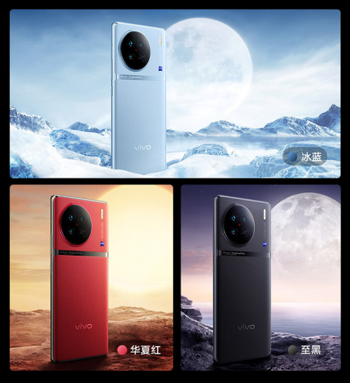 vivo X90系列带来华夏红、原黑、冰蓝、至黑四款配色,通过陶瓷感缎带以⻩金比例将握持区与拍摄区分割,缎带上面的Xtreme Imagination的字样代表了X系列的理念,带给消费者“朝阳新生 美出天际”的美感。此外,vivo X90系列镜头排布考究,手术级不锈钢Halo环在极端环境也能为镜头提供全方位保护。
