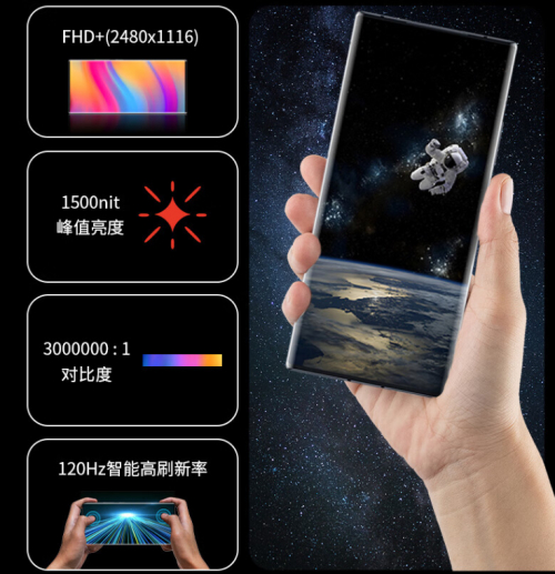 屏幕方面,中兴Axon 40 Ultra航天版采用第三代屏下摄像技术,带来无缺全面屏。搭载6.8英寸AMOLED柔性真曲面屏,支持120Hz高刷新率、1440Hz高频PWM调光、100% DCI-P3广色域,同时获得德国莱茵TUV护眼认证,视觉体验更出色、更舒适。